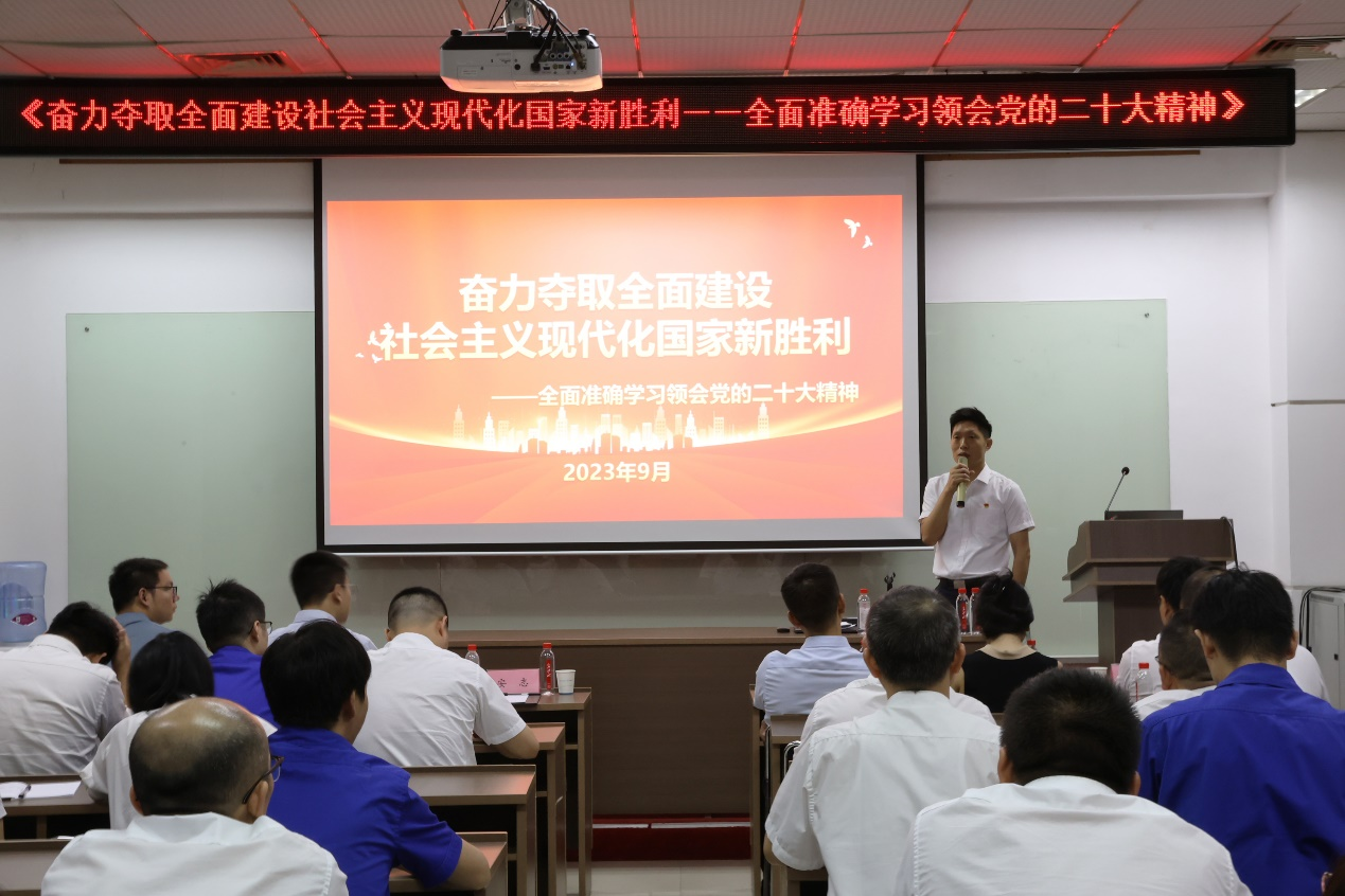 参观结束后,党的二十大代表、长沙市公安局高新分局雷锋派出所所长、省青联常委、法律界别委员安志做了《奋力夺取全面建设社会主义现代化国家新胜利——全面准确学习领会党的二十大精神》主题宣讲,公司党员代表、入党积极分子、青年员工代表等120余人认真学习,并就如何深刻学习领会二十大精神,立足岗位施展才干进行课堂互动。