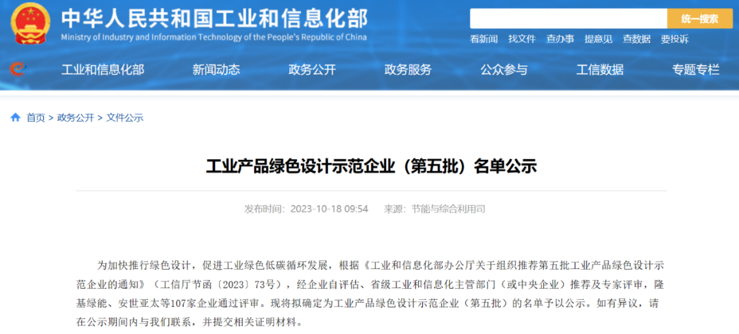 近日,工业和信息化部公布“工业产品绿色设计示范企业(第五批)”名单,MK体育官方网站凭借在国家级创新平台、绿色工厂、绿色标准等方面的突出优势,通过层层评审成功入选。