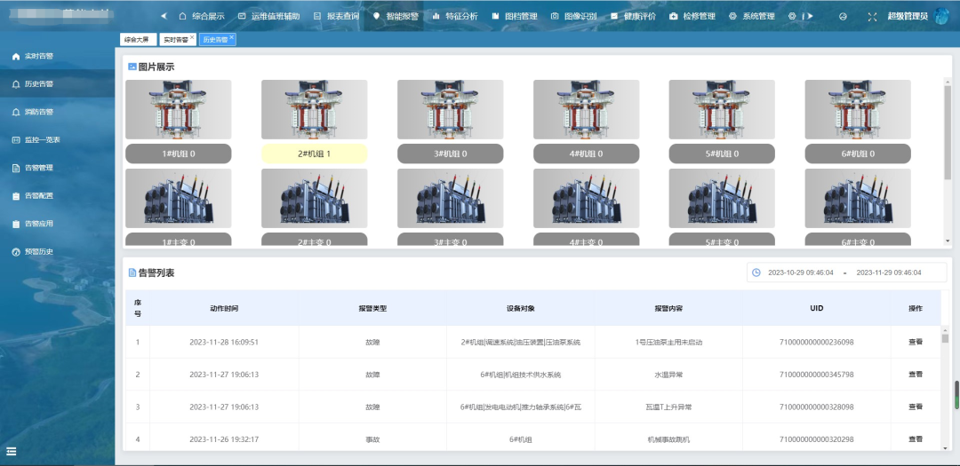 安徽绩溪抽蓄电站共有6台机组,总装机容量1800MW,主要服务于华东电网,在电网中承担调峰、填谷、调频、调相和事故备用等任务,是目前安徽省最大的抽水蓄能电站。针对绩溪电站运行检修管理中存在的难题,公司以丰富的项目实践经验及技术平台优势打造电站运行检修数据分析、决策系统的整体解决方案。系统功能主要包括运维值班辅助、智能告警与诊断分析、多业务协同联动、安全生产巡检、特征曲线分析、设备评价及决策支持、检修数据管理、大屏及综合展示等模块。