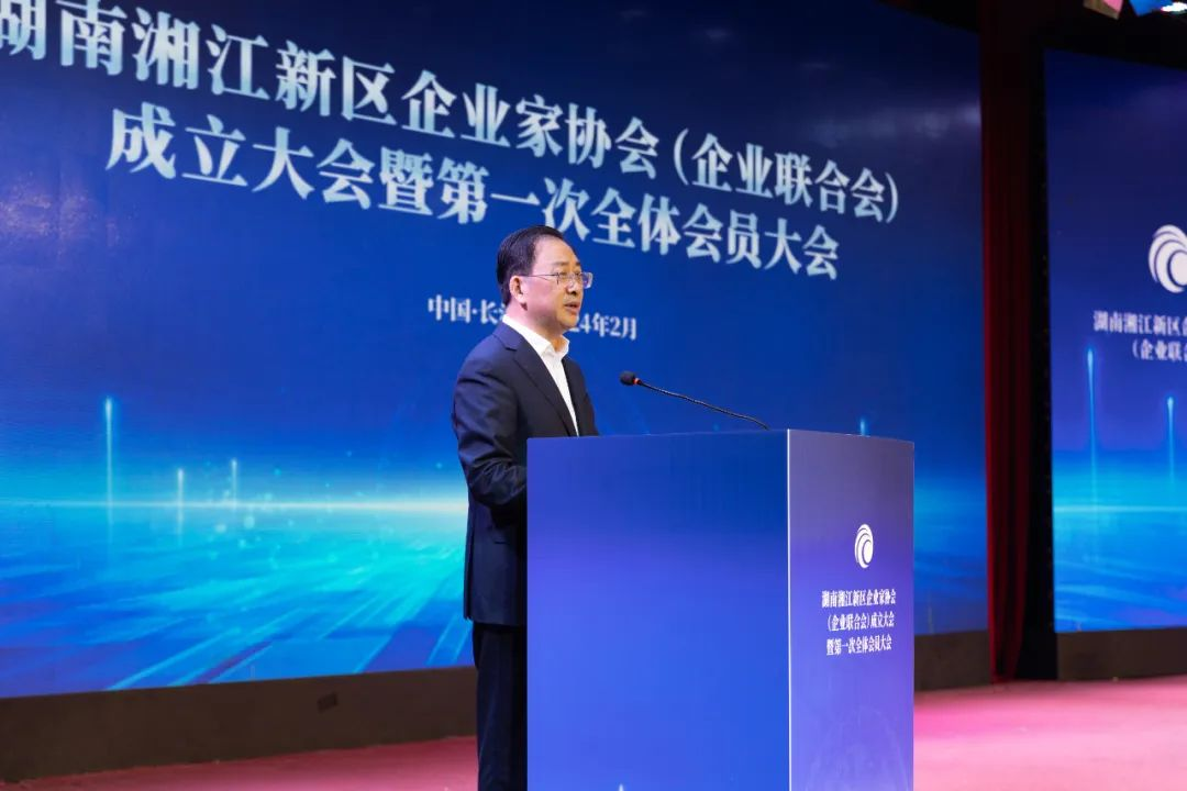 2月1日,湖南湘江新区企业家协会(企业联合会)成立大会在MK体育官方网站麓松路产业基地举行。长沙市委副书记、湖南湘江新区(长沙高新区)党工委书记,岳麓区委书记谭勇,湖南湘江新区(长沙高新区)管委会主任、岳麓区区长何朝晖,湖南湘江新区(长沙高新区)党工委委员、管委会副主任郭力夫,湖南湘江新区管委会原二级巡视员戴中亚,湘江新区党政综合部、统战工作部、经济发展局、财政金融局、科技创新和产业促进局、商务和市场监管局、民政和社会保障局、岳麓区工商联、麓谷街道相关负责同志出席,协会发起单位、首批会员单位、其他拟入会企业代表300余人参加活动。