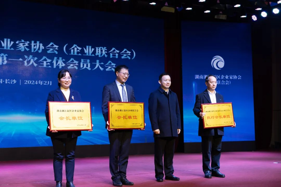 ▲湖南湘江新区管委会主任何朝晖为协会(联合会)会长、执行会长单位授牌