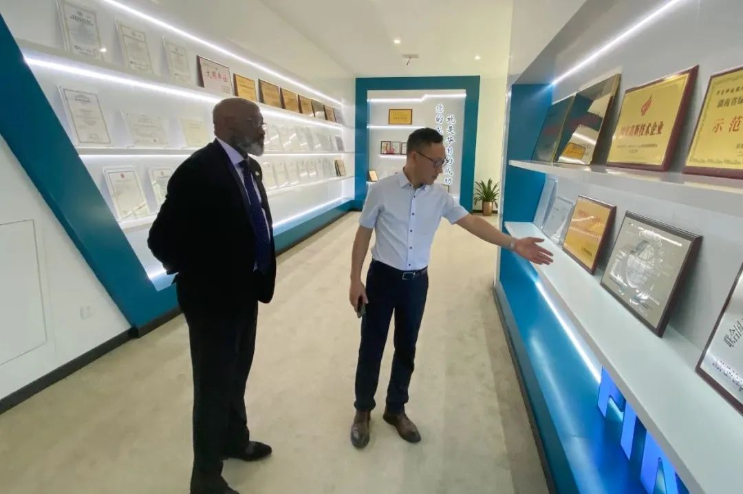 张继承对乌梅哈伊副部长一行的到访表示热烈欢迎,并陪同乌梅哈伊副部长先后参观了公司多功能展厅、多能物联数据中心、新能源微电网示范站、零碳小屋、国际技术交流中心大楼,全面介绍公司技术、产品及市场开拓情况。