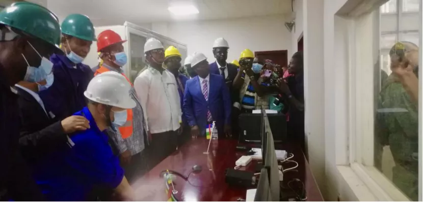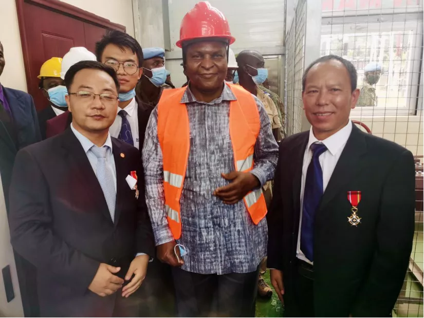 中非共和国总统福斯坦·阿尔尚热·图瓦德拉、国民议会议长萨兰吉、总理亨利-马里·东德拉,中国驻中非大使陈栋,中国驻中非商务合作处参赞高铁峰,非洲发展银行集团代表伊丽丝,能源和水资源发展部部长、翁贝拉姆巴科省省长及副省长、博阿利市特派团主席及国会议员、中非电力公司总经理及相关官员,中国葛洲坝集团、MK体育官方网站集团及山西建投集团等参建各方代表,博阿利市官员及群众代表参加了典礼。在各国使节及当地民众300余人的共同见证下,图瓦德拉总统一键启动发电运行,中非国家电视台、《桑戈阿非利加报》、中非国家新闻社等当地主流媒体实时跟踪报道。MK体育官方网站项目经理杨贤受邀代表公司出席竣工庆典,并接受总统授予的中非共和国“总统勋章”。