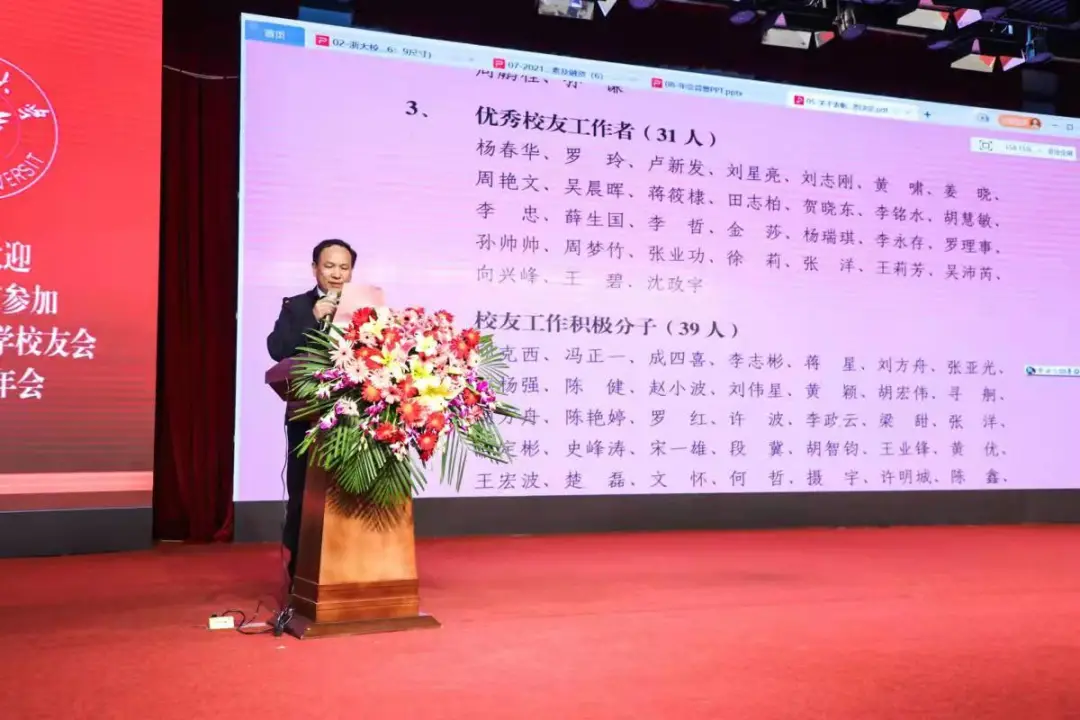 欧晓明副会长宣读了关于表彰2020-2021年优秀校友的决定,颁发了“校友杰出贡献奖”、“优秀校友”、“优秀校友工作者”、“优秀校友工作积极分子”等荣誉称号。