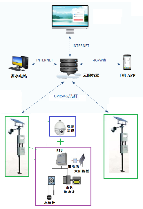 系统基于传感器、物联网、计算机监控等技术,实时采集、传输和监控生态下泄流量数据、图片、视频等关键信息, 自动统计分析下泄生态流量变化情况,实现问题发现、预警、跟踪、处置全过程自动监管,是“绿色水电”长效监督与 管理的重要支撑手段,是水利行业强监管的重要抓手