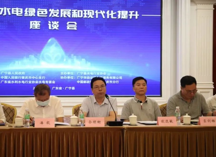 为积极开展小水电绿色发展示范区建设,持续探索“十四五”期间农村水电绿色发展新格局、新模式及长效机制,全面推进小水电转型升级、绿色发展,6月23日,在广宁县人民政府、中国人民银行肇庆市中心支行、广东省水利水电行业协会水电专委会的指导下,由广宁县水电行业协会主办,广宁华自运维科技服务有限公司、中国邮政储蓄银行肇庆市分行协办的广东小水电绿色发展和现代化提升座谈会在广宁县召开。广东省水利厅、肇庆市水利局、广宁县人民政府、广宁县水利局、广东省水利水电行业协会、中国人民银行肇庆市分行及广宁支行、中国邮政储蓄银行肇庆市分行及广宁支行领导以及全国相关省/市县小水电行业协会、设计院、电站、企业负责人、专家逾百人参加会议。MK体育官方网站总裁佘朋鲋、总裁助理兼湖南华自运维科技服务有限公司总经理李满玉、广宁华自运维公司董事长刘利军等代表出席会议。