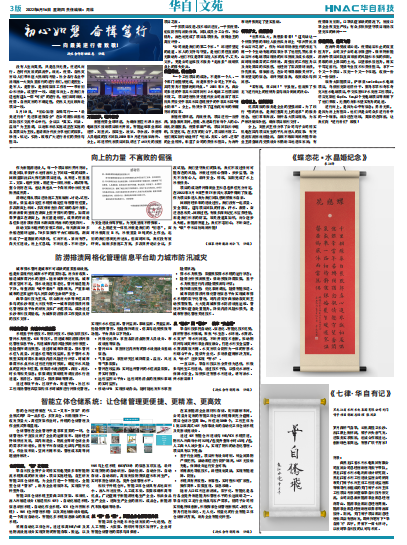 “初心如磐 奋楫笃行——向最美逆行者致敬 向上的力量 不言败的倔强 防涝排渍网格化管理信息平台助力城市防汛减灾 智能立体仓储系统:让仓储管理更便捷、更精准、更高效 《七律·华自有记》