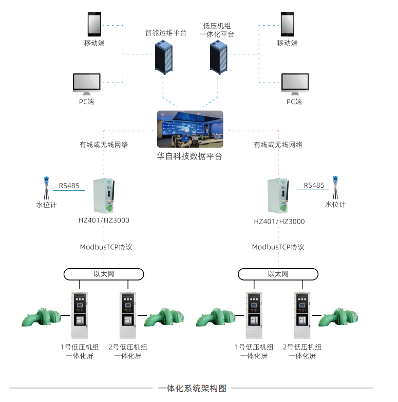 智能低压机组一体化系统采用集成化、标准化、智 能化、信息化的设计理念,集机组保护、励磁调节、转 速控制、数据采集、转速信号、温度测量、自动准同期、 PLC 顺控、水位自动控制、发电计量、智能诊断、远程 运维等功能于一体,实现机组自动优化发电、一键开停 机、智能开停机、远程运维等功能。 一体化系统适用于单机容量 1000kW 以下、机端电 压 400V 的同步水轮发电机组自动发电控制。